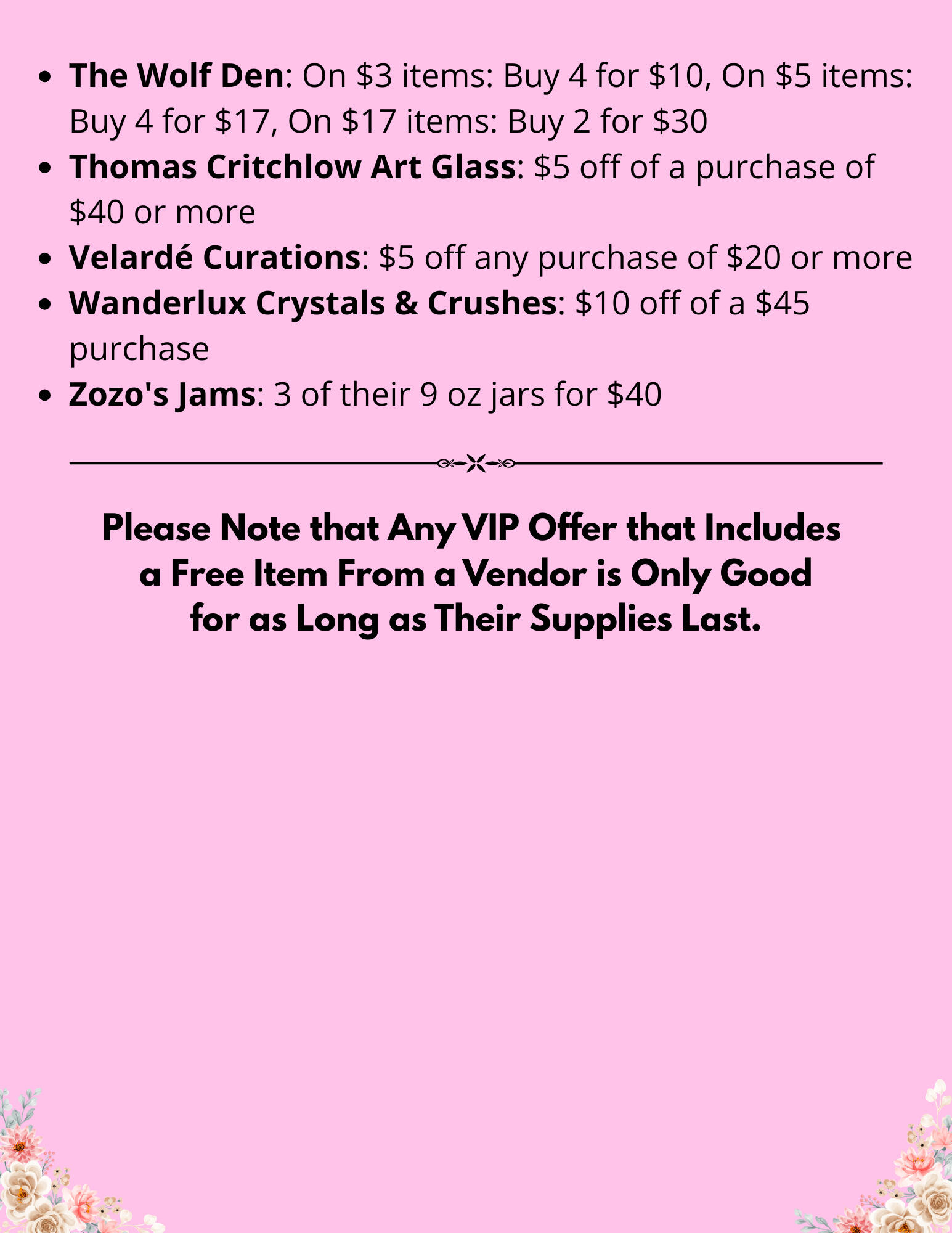 VIP Ticket holders also have exclusive access to the following Vendor discounts*.