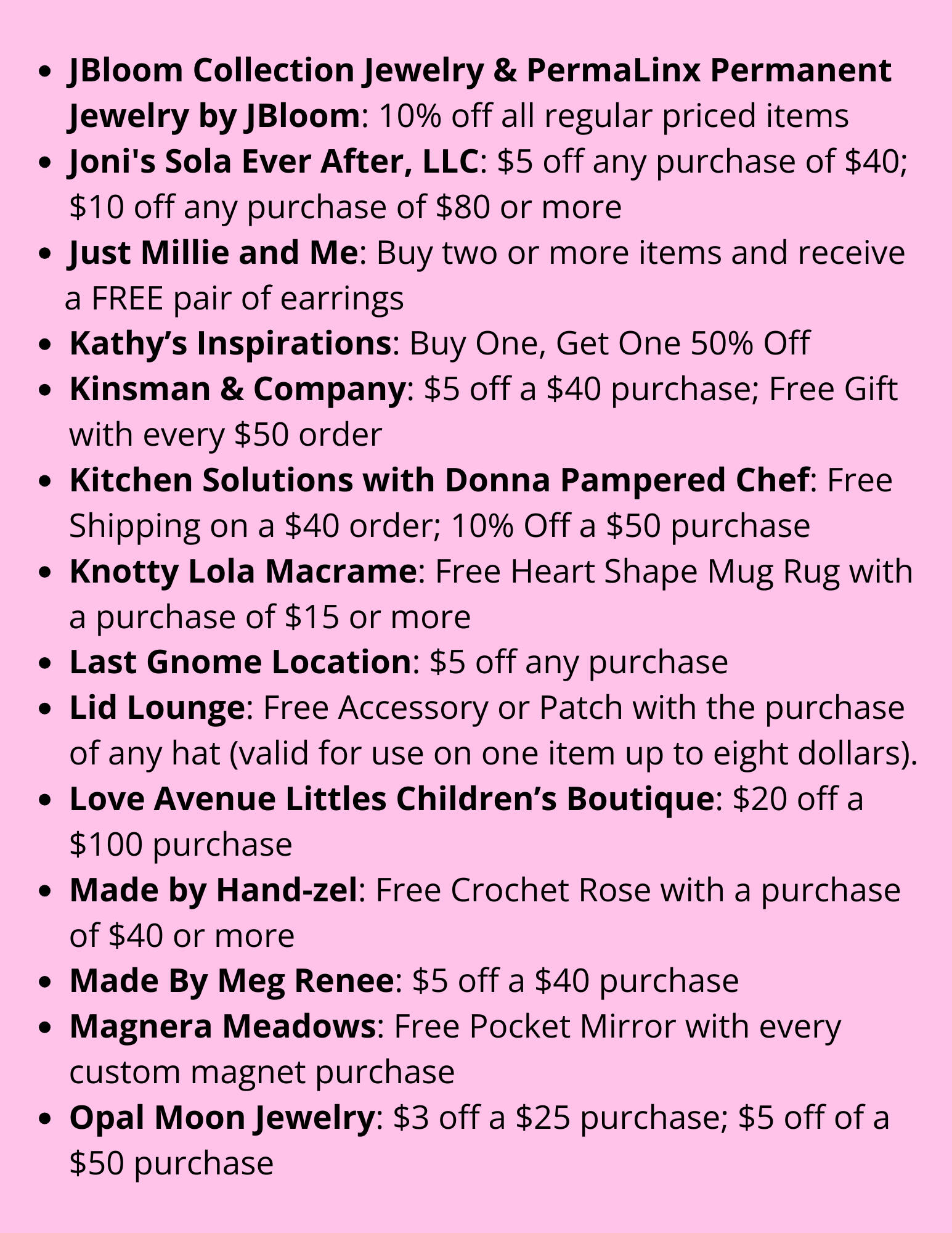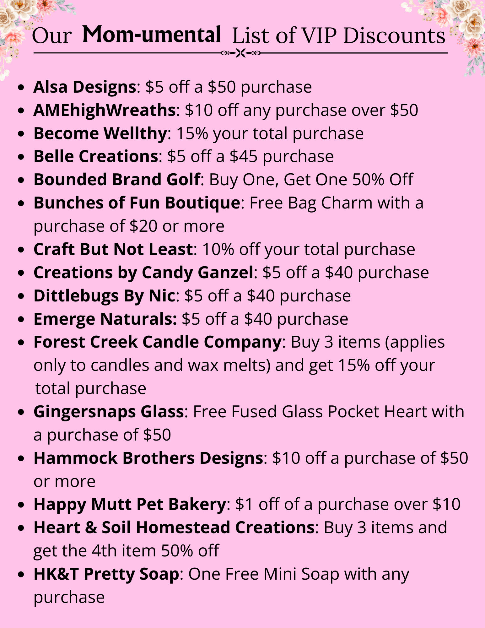 special discounts at over 50 of our vendors